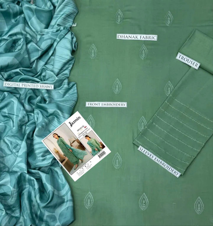 Step into elegance with the Jazmin Dhanak Embroidered 3 Piece | JZ104, a perfect blend of simplicity, sophistication, and comfort. Crafted on premium dhanak fabric, this graceful ensemble offers a lightweight yet cozy feel, making it an ideal choice for both casual and semi-formal gatherings during the cooler season.