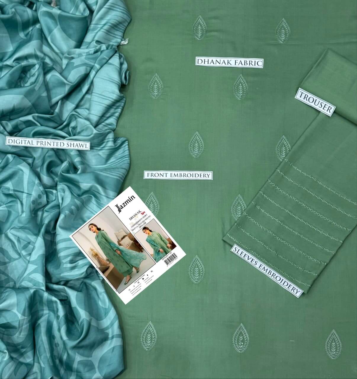Step into elegance with the Jazmin Dhanak Embroidered 3 Piece | JZ104| Trendy Outfits - Anu Jee, a perfect blend of simplicity, sophistication, and comfort. Crafted on premium dhanak fabric, this graceful ensemble offers a lightweight yet cozy feel, making it an ideal choice for both casual and semi-formal gatherings during the cooler season.