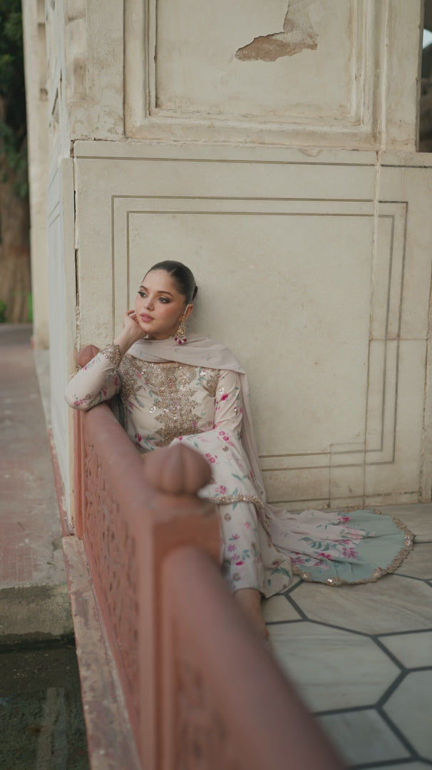 Add grace and charm to your wardrobe with the IZNIK Embroidered Linen Digital Collection. This elegant 3‑piece suit includes a linen printed shirt, printed trouser, and a printed linen dupatta, all designed to create a sophisticated and timeless look. The soft pastel pink base color is beautifully adorned with delicate floral prints in shades of red, blue, and green, making it a perfect outfit for both casual and semi‑formal wear. The shirt features intricate golden embroidery on the neckline and front panel, enhancing its luxurious appeal. The flowy dupatta and matching trouser complete the look with effortless elegance. Crafted from premium linen fabric, it ensures both comfort and durability while keeping your style refined.