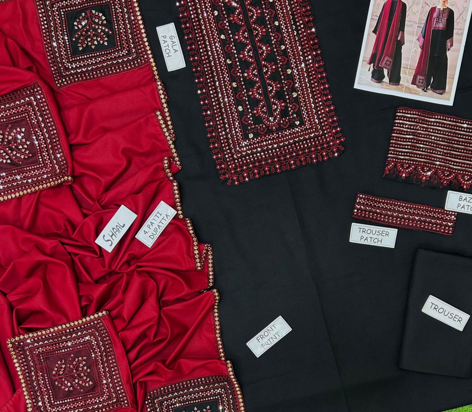 The Vanya Dhanak Embroidered 3 Piece | VA100| - Trendy Outfits -Anu Jee exudes an aura of refined elegance, combining the richness of deep hues with the warmth of premium dhanak fabric. Designed to capture both comfort and sophistication, this ensemble is a statement of understated luxury for the winter season.